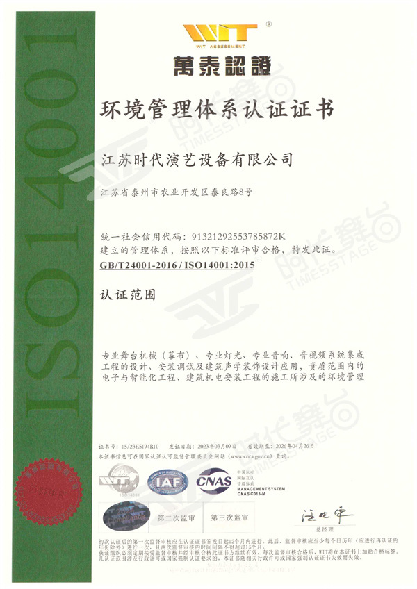 環(huán)境認證證書