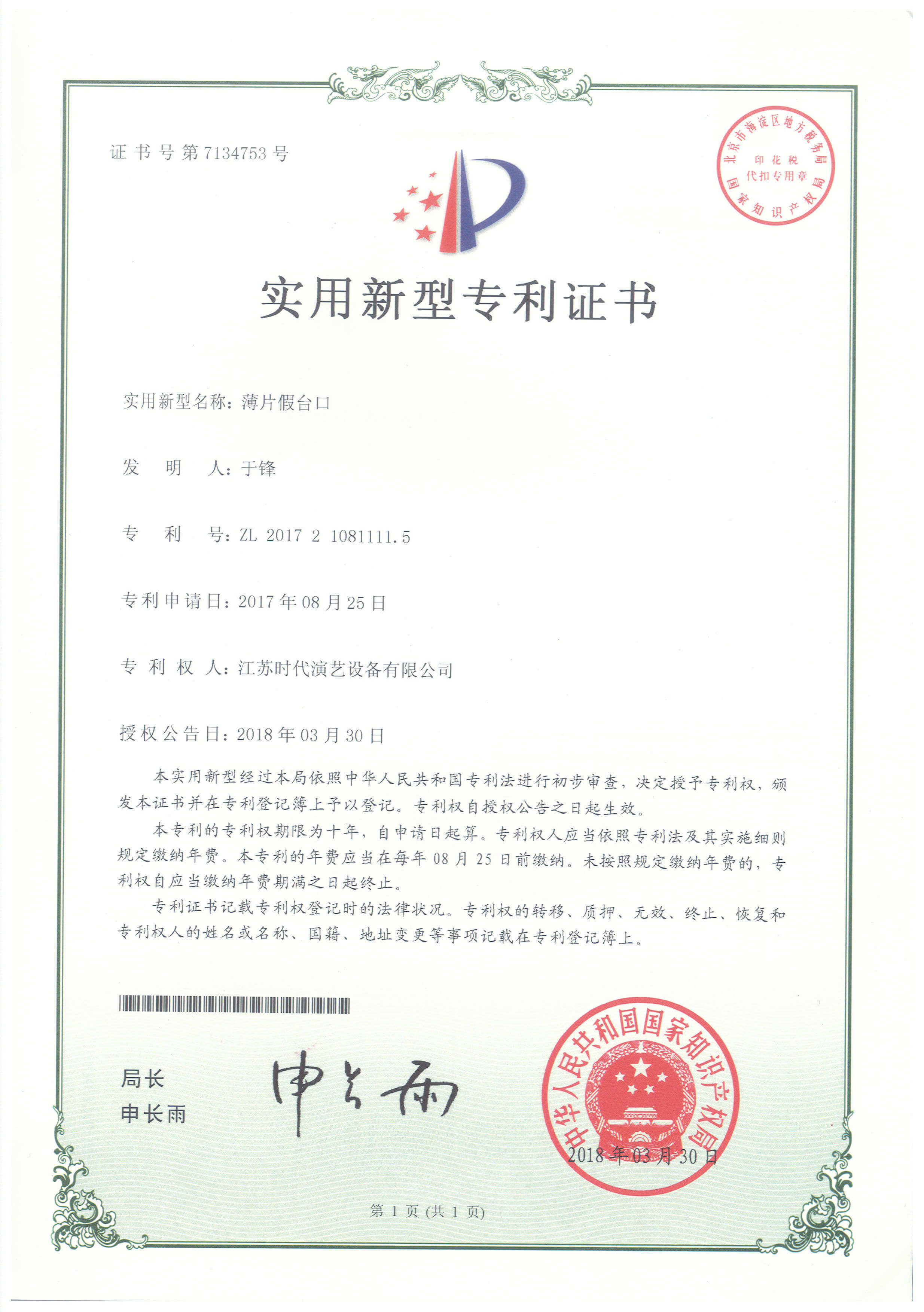 知識產(chǎn)權(quán)證書