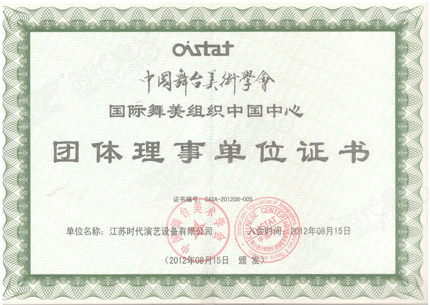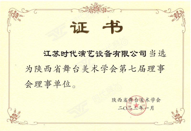 陜西省舞臺(tái)美術(shù)協(xié)會(huì)理事單位證書